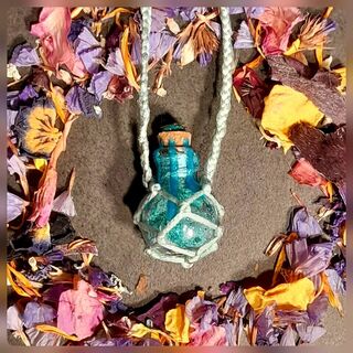 This sweet Intention Pendant is just calling to be worn, each one unique & made with love. The Bottle contains crystals, dried flowers, sparkling trinkets with moons & stars, hang anywhere you like or wear around your neck with the handmade Macrame pouch & braided cord.